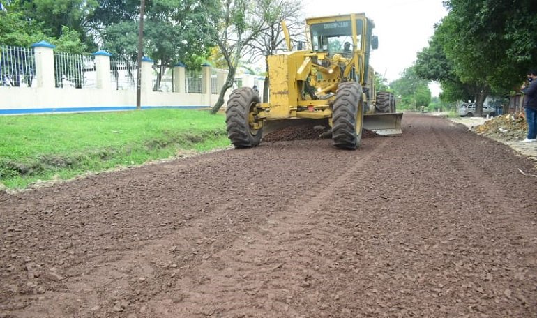 Continúan los trabajos de saneamiento y tratamiento de suelo con cal para la posterior pavimentación de la calle Felipe Oliva, entre Coronel Bogado y O'Higgins.