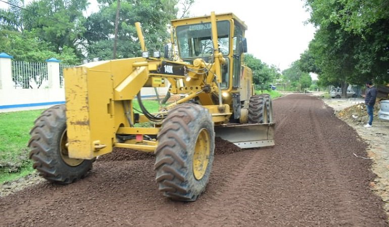 Prosiguen las intensas acciones de perfilado, relleno, compactación y enripiado sobre diferentes arterias del barrio, sumando tareas de desmalezado y cuneteo con carga directa.
