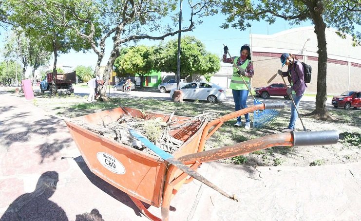 En tanto, las acciones de jardinería, que incluyen trabajos de rastrillado, recolección de acopios, limpieza de solados y sendas peatonales y poda de especies ornamentales, se ejecutaron en los siguientes sectores: plazoletas de los barrios Villa Hermosa y Emilio Tomás; plazoletas de las avenidas Juan B. Cabral e Independencia; Plaza San Martín, Plaza