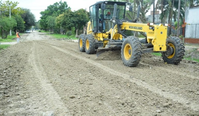 Sobre arterias internas del barrio cobraron intensidad los trabajos de perfilado, relleno y compactación.