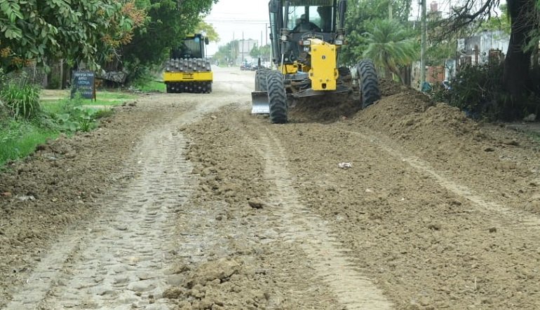 Con el empleo de motoniveladoras, agentes comunales ejecutaron tareas de perfilado de calles internas y la limpieza del predio deportivo del barrio.