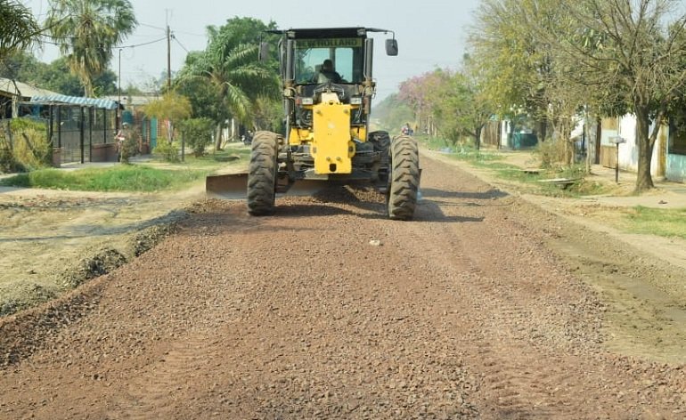 Cuadrillas pertenecientes a la Dirección de Mantenimiento de la Vía Pública de la comuna capitalina, junto a cooperativistas, utilizando máquinas y camiones, profundizaron durante la jornada del viernes las tareas de relleno, compactación y enripiado sobre distintas arterias de los barrios Luján, San Antonio y La Alborada.