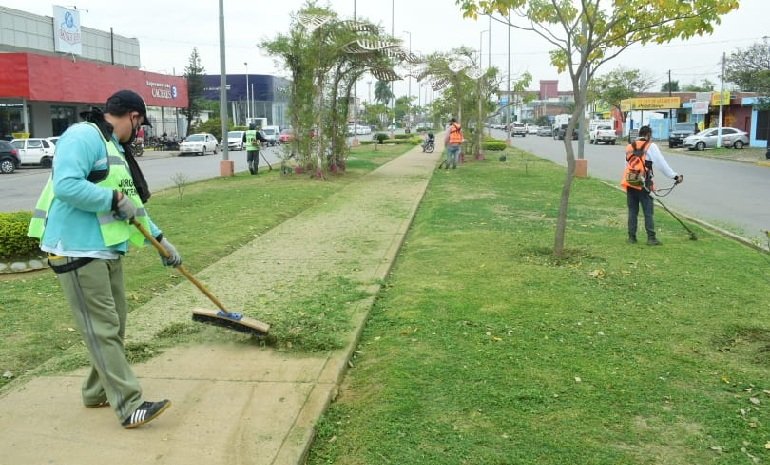 Cuadrillas de la Dirección de Parques y Espacios Verdes de la comuna capitalina, junto a cooperativistas, llevaron adelante, durante la jornada del lunes, intensas acciones de desmalezado, jardinería, poda y recolección de ramas y acopios.