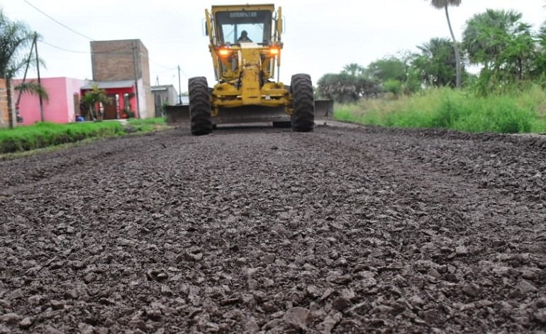 Con el empleo de máquinas, agentes municipales intensificaron las tareas de enripiado sobre distintas arterias del barrio.