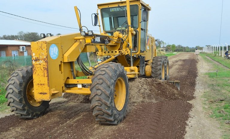 Con el empleo de motoniveladoras, agentes comunales ejecutaron tareas de perfilado sobre la calle Beata Nazaria de March, sumando trabajos de limpieza de cordón cuneta.