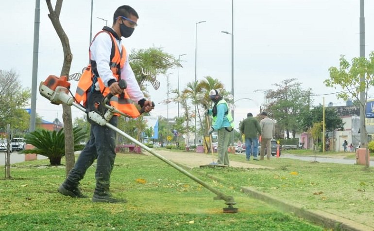 Equipos de trabajo pertenecientes a la Dirección de Parques y Espacios Verdes de la comuna capitalina, junto a cooperativistas, llevaron adelante intensas acciones de desmalezado, jardinería, poda y recolección de residuos no convencionales.