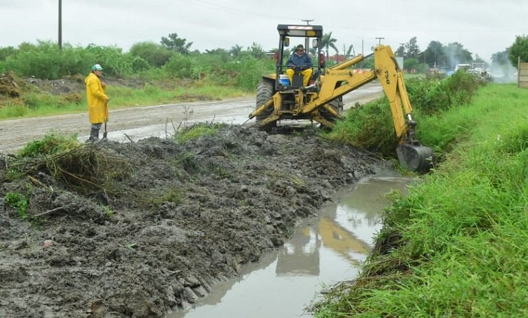Cobraron intensidad las tareas de limpieza y desobstrucción de canal de descarga en la intersección de las calles Carlos Pasarelli y Sandoval Eriberic.