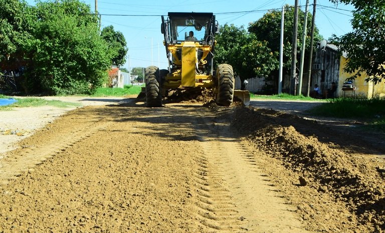 En conjunto con la Dirección de Obras Públicas, continúan las tareas de preparación de la base para proceder luego con la pavimentación de la calle Santa María de Oro, entre Juan J. Silva y Pringles.
