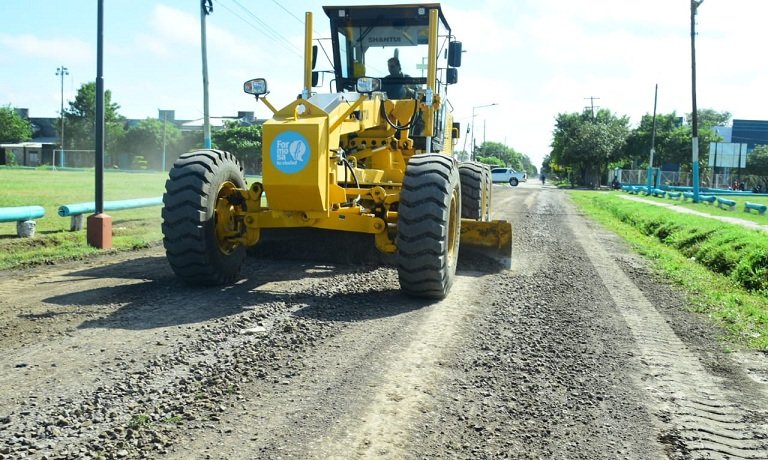 Sobre distintos tramos de la calle Juan Somacal se intensificaron los trabajos de perfilado, relleno y compactación.