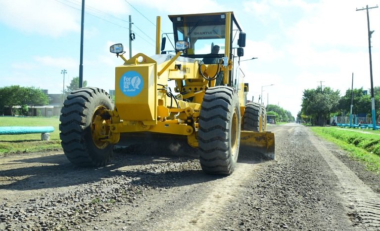 Avanzan los trabajos de apertura de la calle Eliseo Guanes, entre la avenida Alicia Moreau de Justo y José Salomón, y la instalación de cañerías de mayor diámetro; sumando tareas de perfilado y relleno sobre la avenida Los Pioneros.