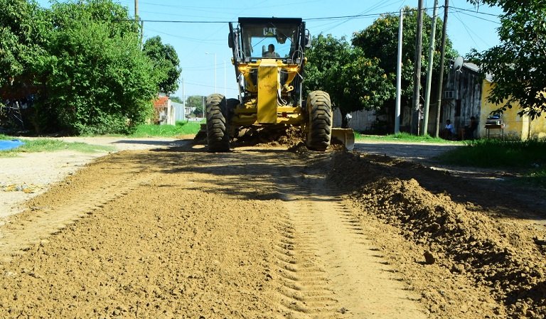 Al mando de motoniveladoras, efectivos comunales llevaron a cabo acciones de perfilado de arterias y relleno con suelo seleccionado en inmediaciones del Centro Juan Pablo II.