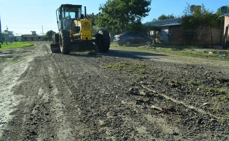 En distintas arterias del barrio se llevaron a cabo tareas de perfilado, junto a la distribución, relleno y compactación de escombros.