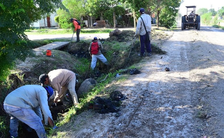 Prosiguen las acciones de limpieza de cunetas de forma manual en la intersección de las calles Belgrano y Cabildo.
