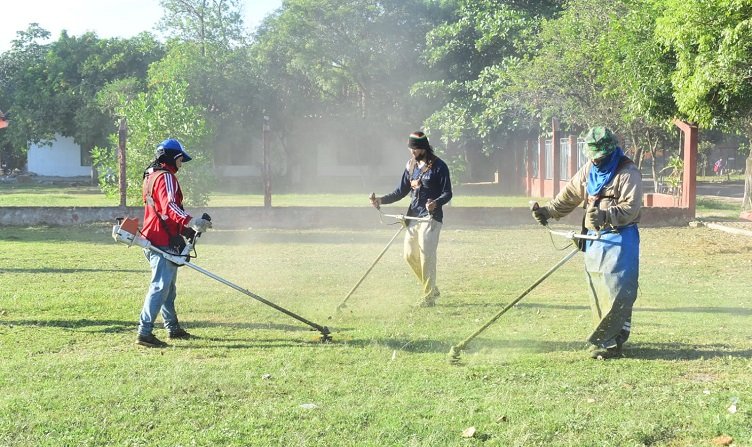 Equipos de trabajo pertenecientes a la Dirección de Parques y Espacios Verdes de la comuna capitalina, junto a cooperativistas, continúan desarrollando intensas acciones de desmalezado, poda y jardinería, acentuando el plan de mantenimiento y embellecimiento de plazas, paseos, áreas de esparcimiento y avenidas distribuidas en diferentes sectores de la ciudad.
