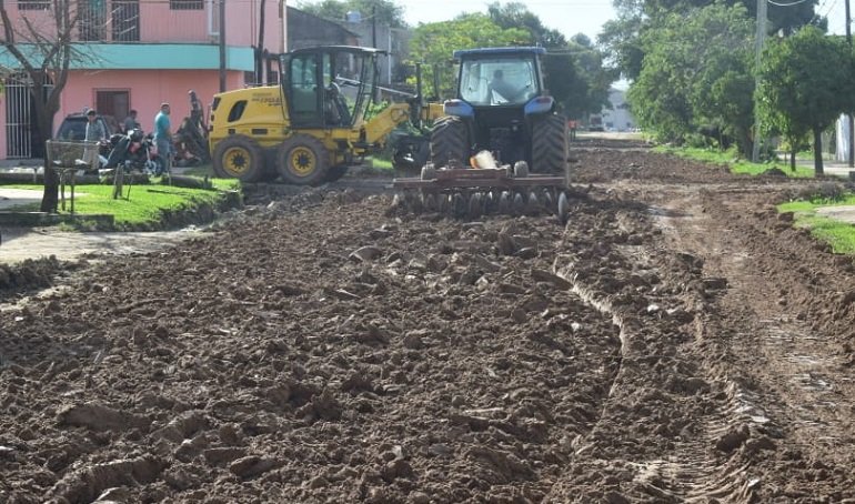 Operarios al mando de motoniveladoras, llevaron a cabo el perfilado y carga de suelo en calles de los barrios Mariano Moreno y Virgen del Rosario, en este último precisamente sobre la Santa María de Oro y José M. Uriburu, con compactación de suelo, trabajo que se complementó con la recolección de residuos voluminosos.