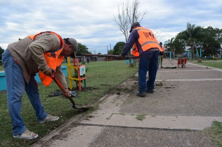 El municipio capitalino, a través de su Dirección de Parques y Espacios Verdes, mantiene su plan de tareas atendiendo permanentemente al aspecto e higiene de la ciudad, poniendo énfasis actualmente en el desmalezado y limpieza de espacios públicos de distintas dimensiones, acción en la que acompañan cuadrillas de cooperativistas.