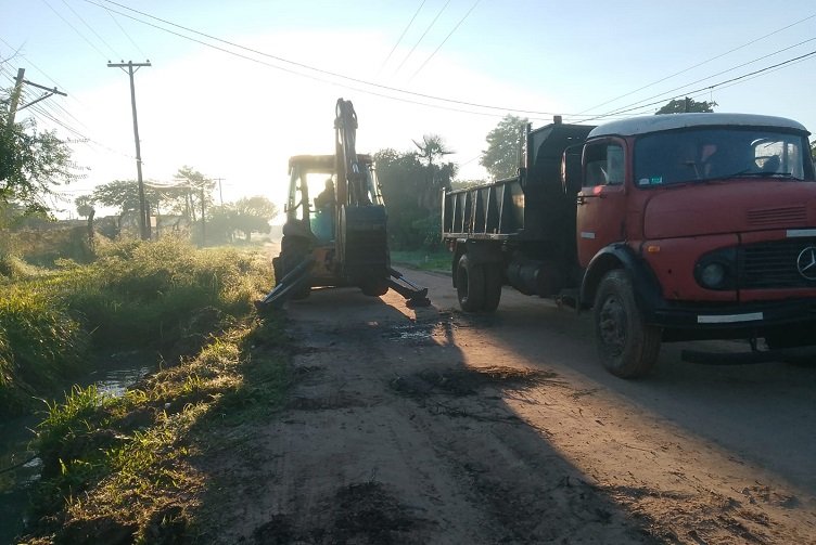 Por su parte, en el barrio Don Joaquín, se realizó la limpieza del canal principal con excavadora, una intervención importante para garantizar que el agua escurra correctamente y prevenir inconvenientes.