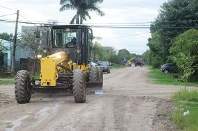 Cuadrillas comunales pertenecientes a la Dirección de Mantenimiento de la Vía Pública, junto a cooperativistas, dieron continuidad durante la jornada del lunes a los operativos de optimización de arterias en un amplio sector del ejido urbano.
