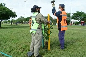 Continuando con el extenso cronograma de trabajo que se lleva adelante de manera diaria en diferentes puntos de la ciudad, agentes comunales pertenecientes a la Dirección de Parques y Espacios Verdes de la comuna capitalina.