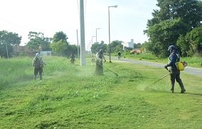 Equipos de trabajo de la Dirección de Parques y Espacios Verdes del Municipio, junto a cooperativistas, continúan interviniendo plazas, plazoletas y paseos diseminados en diferentes barrios, acentuando los trabajos de desmalezado y poda correctiva de especies arbóreas.