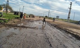 En el marco del operativo integral que viene desarrollándose desde inicios de semana en barrios de la Jurisdicción Cinco, desde tempranas horas del jueves la Municipalidad arrancó trabajos para distribuir ripio en el acceso principal del B° 6 de Enero, como parte de la agenda que también está llevando mejoras a los barrios 8 de Marzo y 20 de Julio.