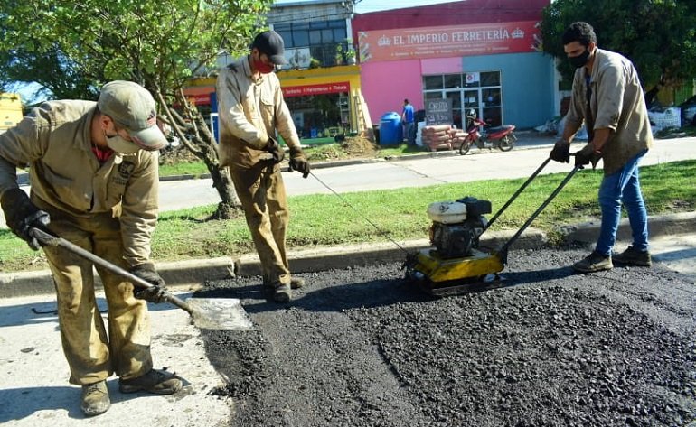 Por su parte, las tareas de bacheo con asfalto en frío, que consisten en trabajos de limpieza, sellado, relleno y compactación, se llevaron a cabo sobre la Av. Napoleón Uriburu, desde Eva Perón hasta Padre Patiño, y en la Av. Nicolás Avellaneda, entre Av. Gutnisky y José María Uriburu.